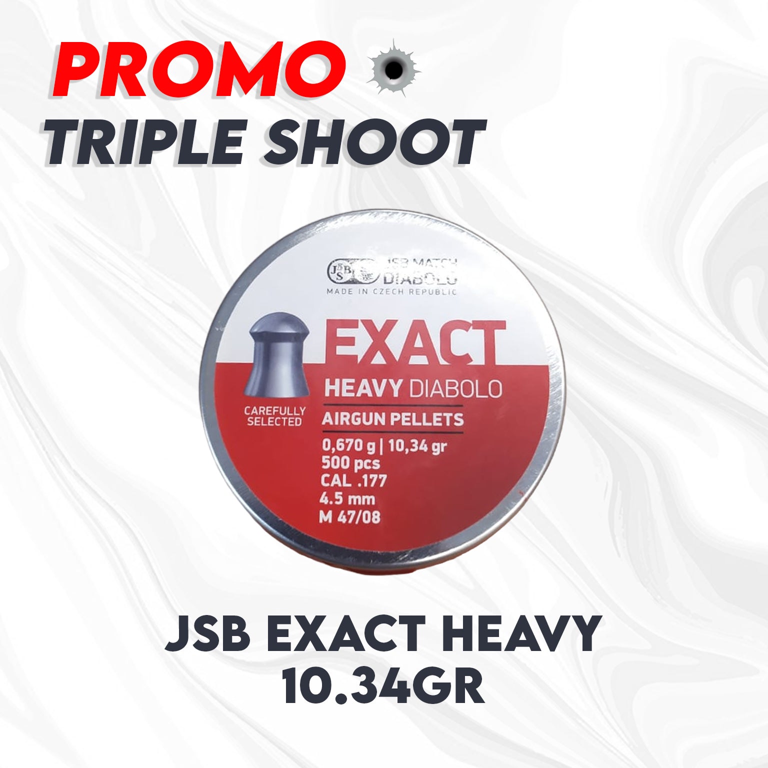 Dengan promo spesial ini, setiap pembelian 2 Kaleng Mimis JSB JSB EXACT HEAVY, kalian bisa mendapatkan Kaleng ke-3 dengan diskon 50%.