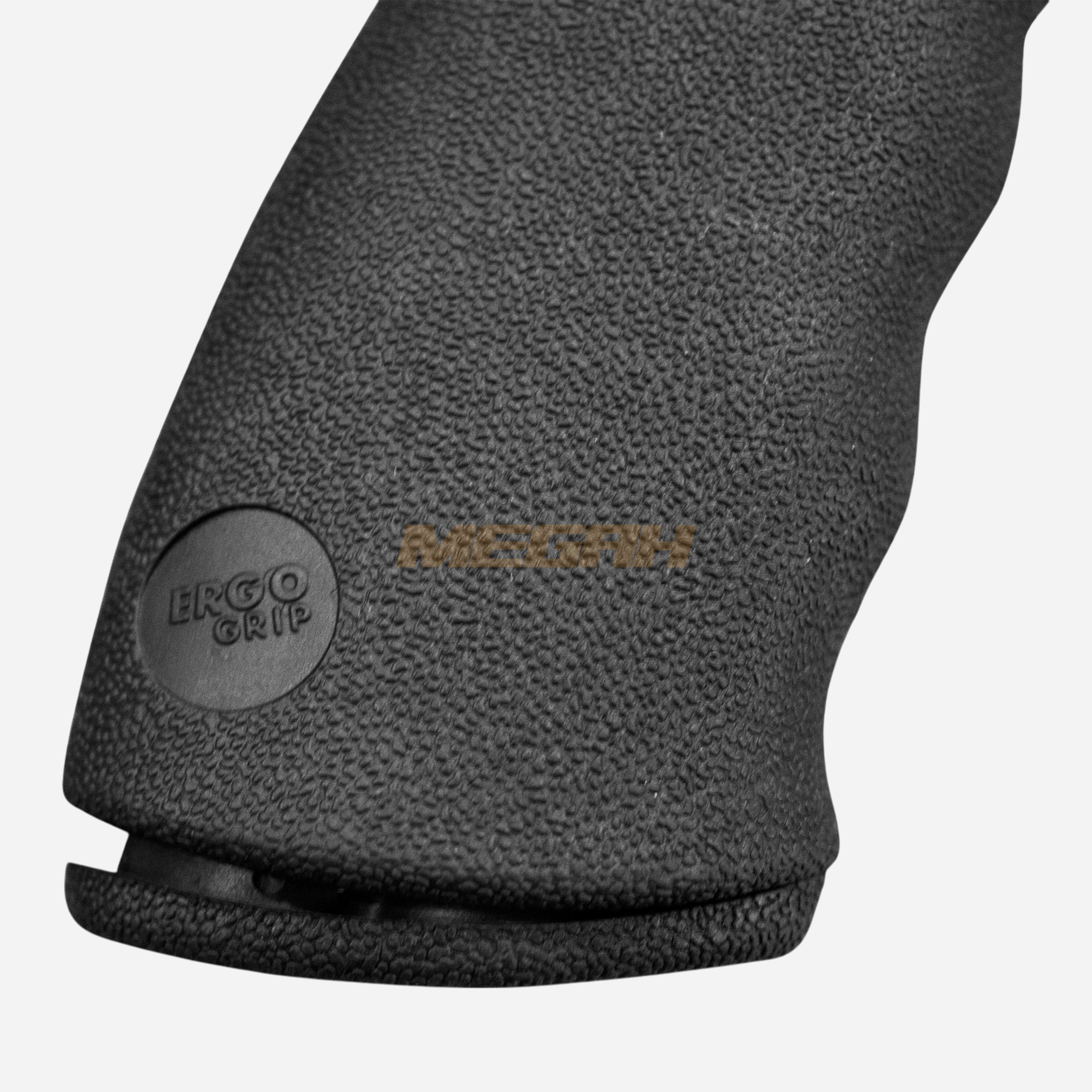 Grip ERGO compatible dengan unit Airsoft Rifle, seperti M4, AR15, dan M16. Dirancang ambidextrous dan ergonomis agar pas di tangan pengguna. Dipasang ke unit menggunakan baut / sekrup.