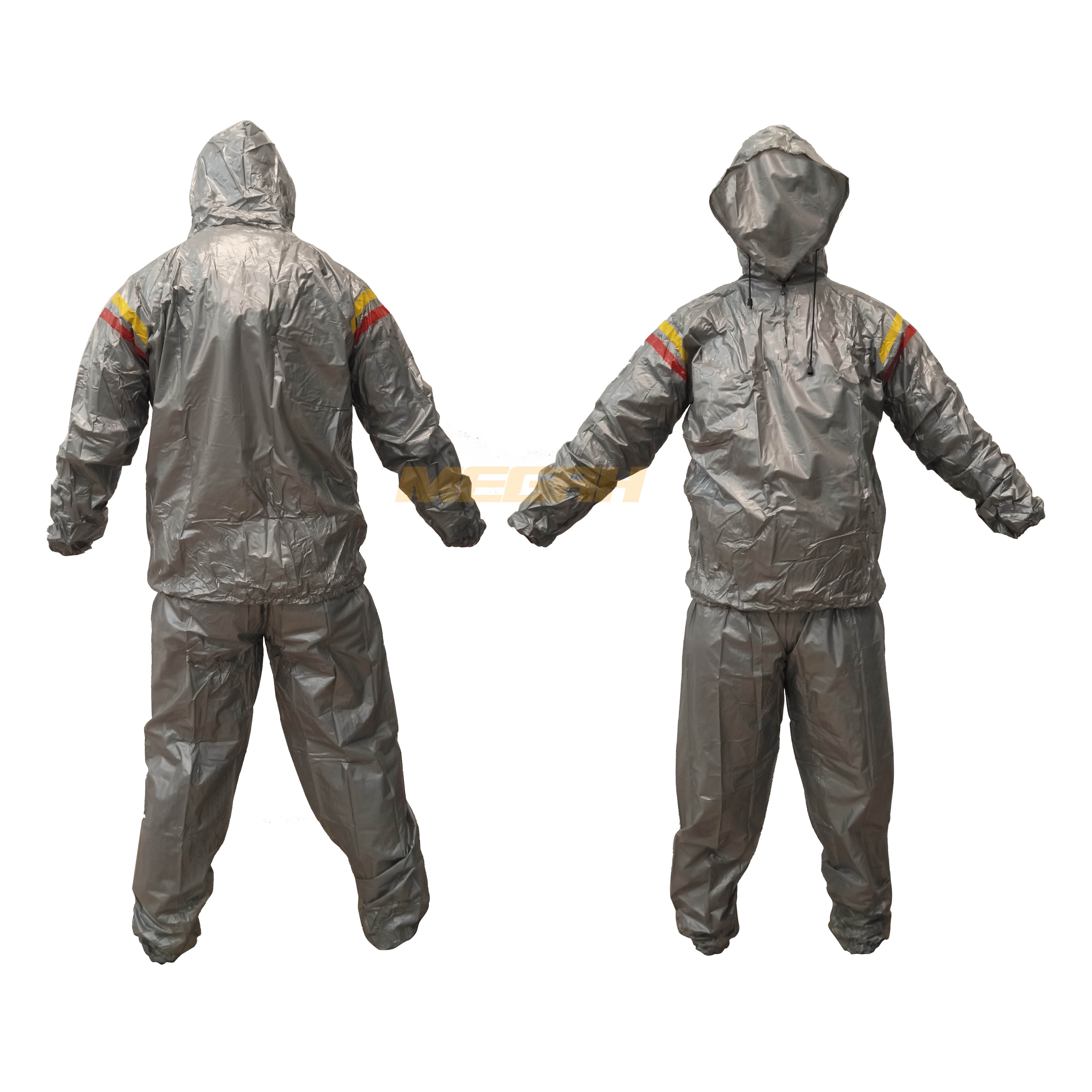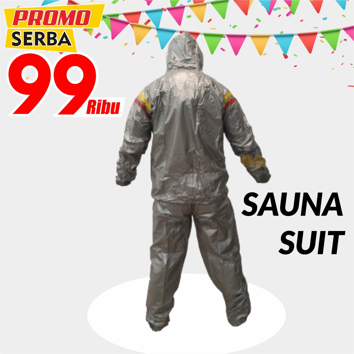 Setelan sauna dibuat dari bahan Thermoplast Polymer berkualitas yang memiliki ketahanan terhadap panas, elastis dan daya tahan yang tinggi. Membantu pengguna membakar lemak dan mengeluarkan keringat ketika digunakan. Setelan sauna ini sudah dilengkapi juga dengan penutup kepala.