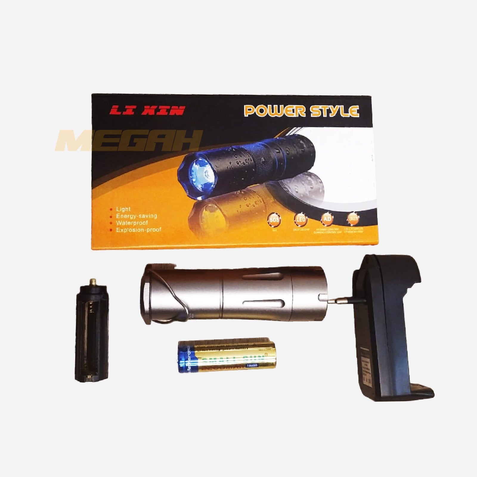 Senter berbahan Allumunium Alloy menggunakan lampu LED Bulb 3 Watt yang tahan hingga 100.000 jam serta baterai yang bisa di charge hingga 500x, Senter ini sudah waterproof dan juga shockproof sehingga mempunyai ketahanan yang kuat. Dengan bentuk yang simple, compact dan mudah digunakan, senter ini cocok untuk kegiatan outdoor serta menjadi lampu gantung dalam tenda.
